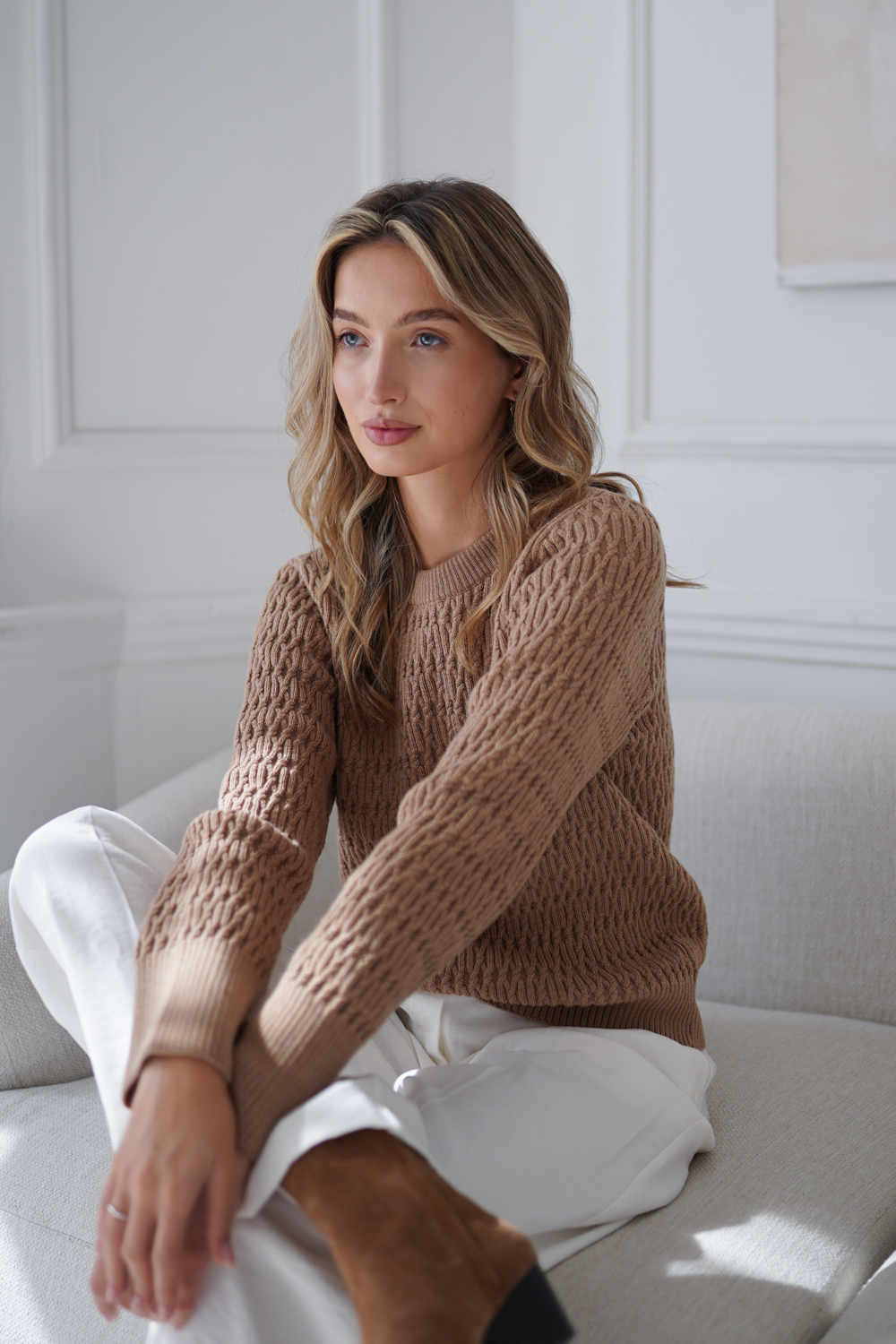 Najnowsze propozycje Wool So Cool przedstawiają się w ciepłych, naturalnych barwach: złamanej bieli, karmelu, piaskowym beżu i chłodnej szarości, ale nie brakuje też modnej zielonej oliwki oraz czerni. Swetry, choć proste w formie, intrygują geometrycznymi splotami i ciekawymi fakturami; obok klasycznych z okrągłym dekoltem pojawiają się też modele bez rękawów, idealne do tworzenia warstwowych jesiennych stylizacji. Kolekcję uzupełniają balaklawy – niezwykle praktyczne nakrycie głowy, które pokochały nie tylko modne dziewczyny z Kopenhagi.