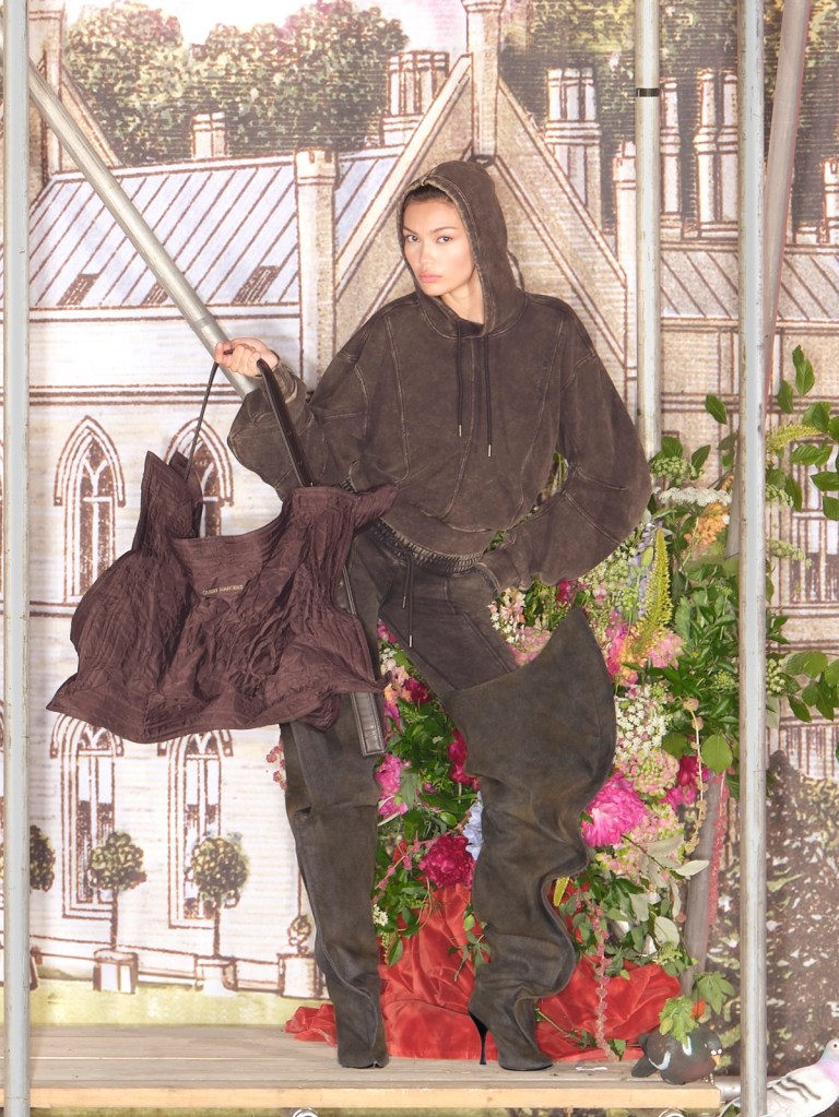 Doskonałym uzupełnieniem kolekcji są charakterystyczne dla marki Y/Project kozaki z szeroką, marszczoną cholewką, „gniecione” torebki oraz przeskalowana biżuteria.