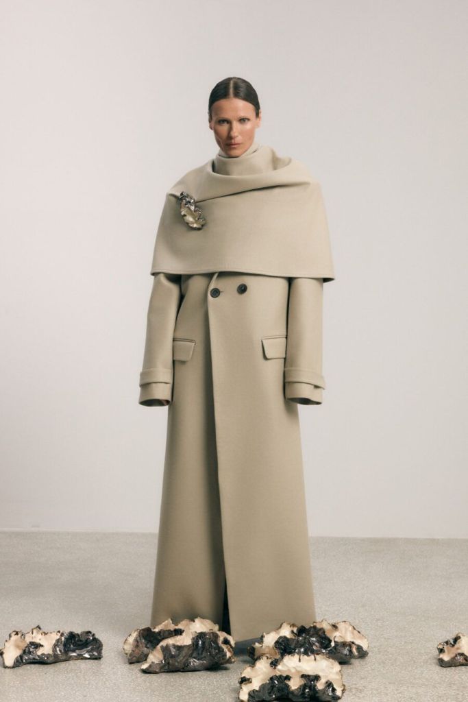 W jesienno-zimowej kolekcji Karen Arcanjo moda płynnie stapia się ze sztuką, tworząc użytkowe elementy garderoby, które jednocześnie zasługują na wystawienie ich w muzeum. Projektantka eksploruje tradycyjne techniki rękodzielnicze, wplatając je w nowoczesne, minimalistyczne projekty.