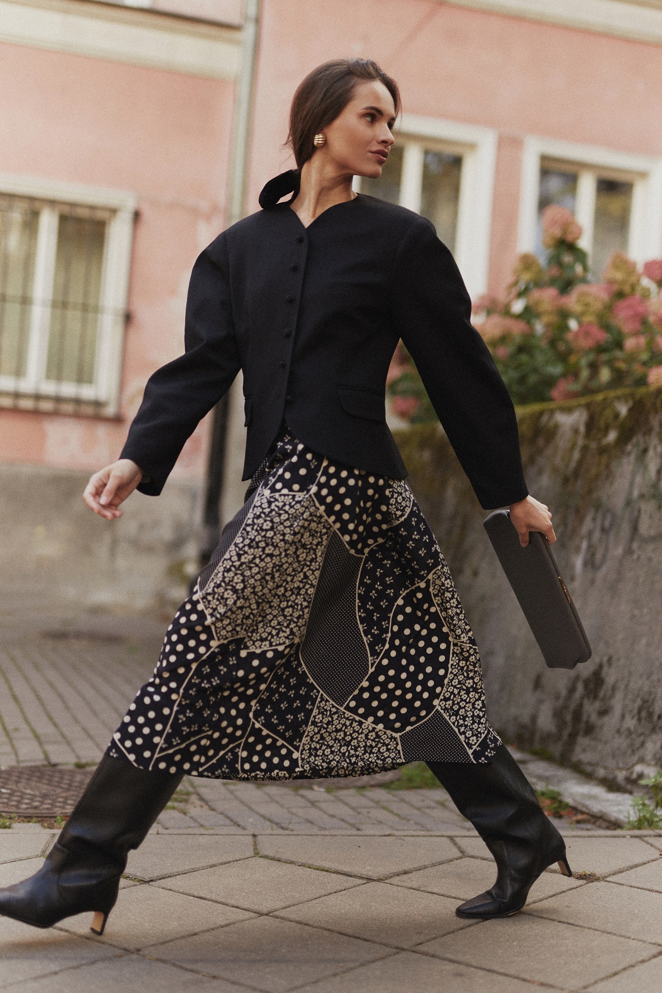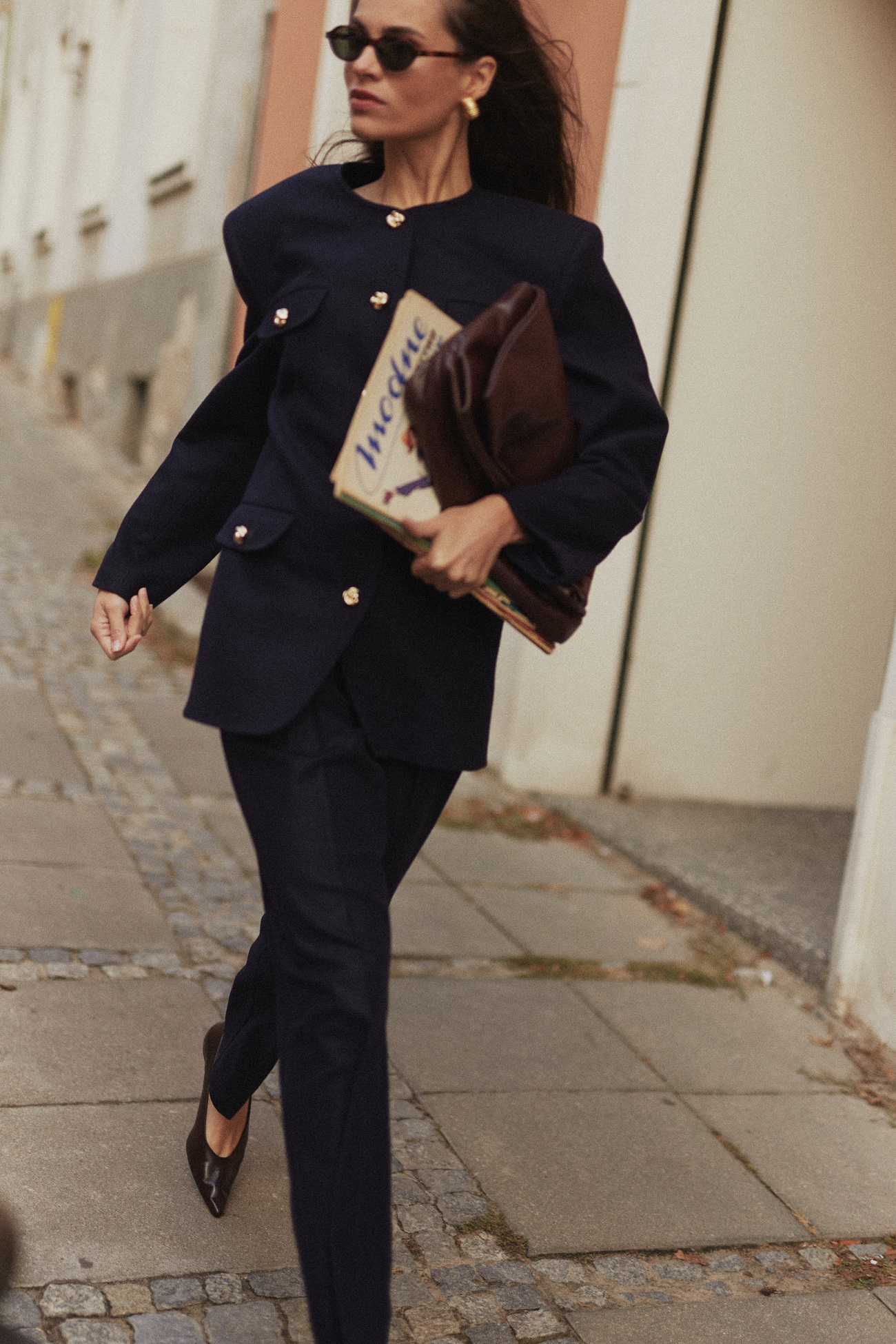 Propozycje madelle. na sezon jesienno-zimowy czerpią garściami z ery supermodelek, magazynów modowych znalezionych u mamy na dnie szafy, przeglądanych z ekscytacją i zachwytem, a także fasonów, w których pobrzmiewają jeszcze echa lat 80. – ramiona podniesione poduszkami, taliowane marynarki czy pudełkowe żakiety z ozdobnymi guzikami. W tej nieco ugrzecznionej, uwspółcześnionej wersji power dressingu zawarta jest cała jego esencja – poczucie siły, pewności siebie i tego, że nie trzeba nikomu nic udowadniać.