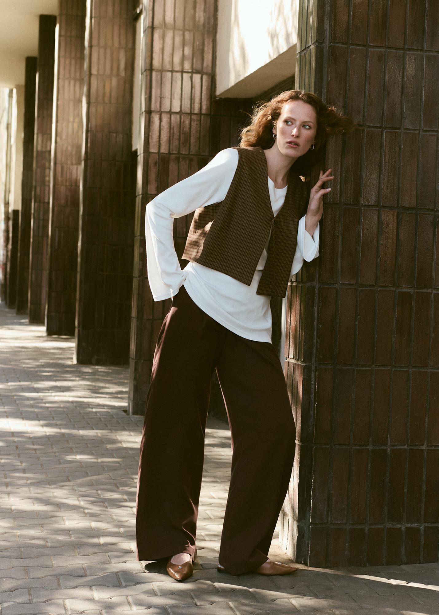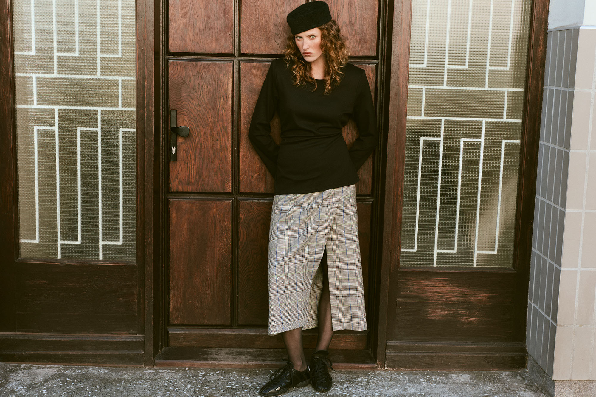 Uwielbiana i często noszona przez samą projektantkę kamizelka powraca w jesiennej odsłonie – dwustronny model, z jednej strony z motywem kratki, a sztruksowy z drugiej – nawiązuje do sztruksowych detali z linii denim. Tym samym Karolina Naji udowadnia, że o swoich projektach myśli długofalowo – tworzy je z myślą o łączeniu poszczególnych ubrań również z tymi z poprzednich sezonów. Bo ubrania mają służyć nam, a nie na odwrót.