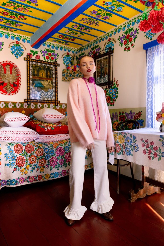 W kolekcji „Sentymenty” znajdziemy wykonane z wielką starannością na szydełku kolczyki-rybki, zawieszki w kształcie jeżyn lub krewetek na koralikowych naszyjnikach czy chokery z różą. Ich żywe, nasycone kolory i radosna estetyka doskonale harmonizują z barwnymi chatami Zalipia, znanego jako „malowana wieś”, gdzie zrealizowano zdjęcia do kampani.