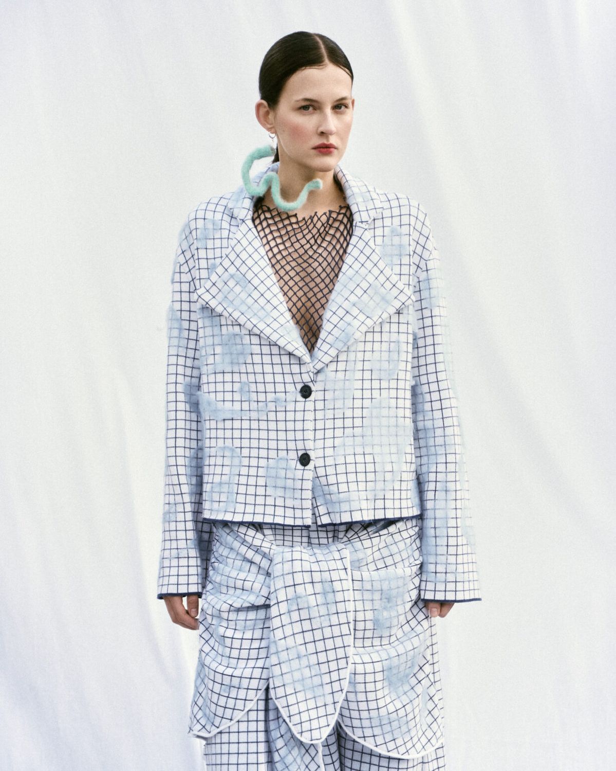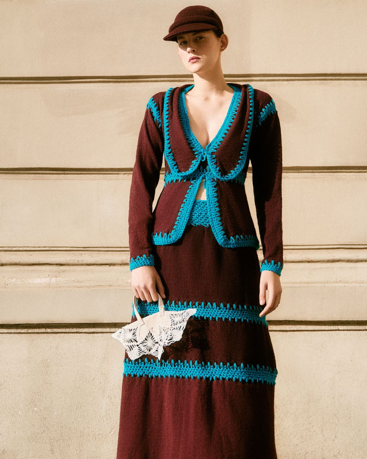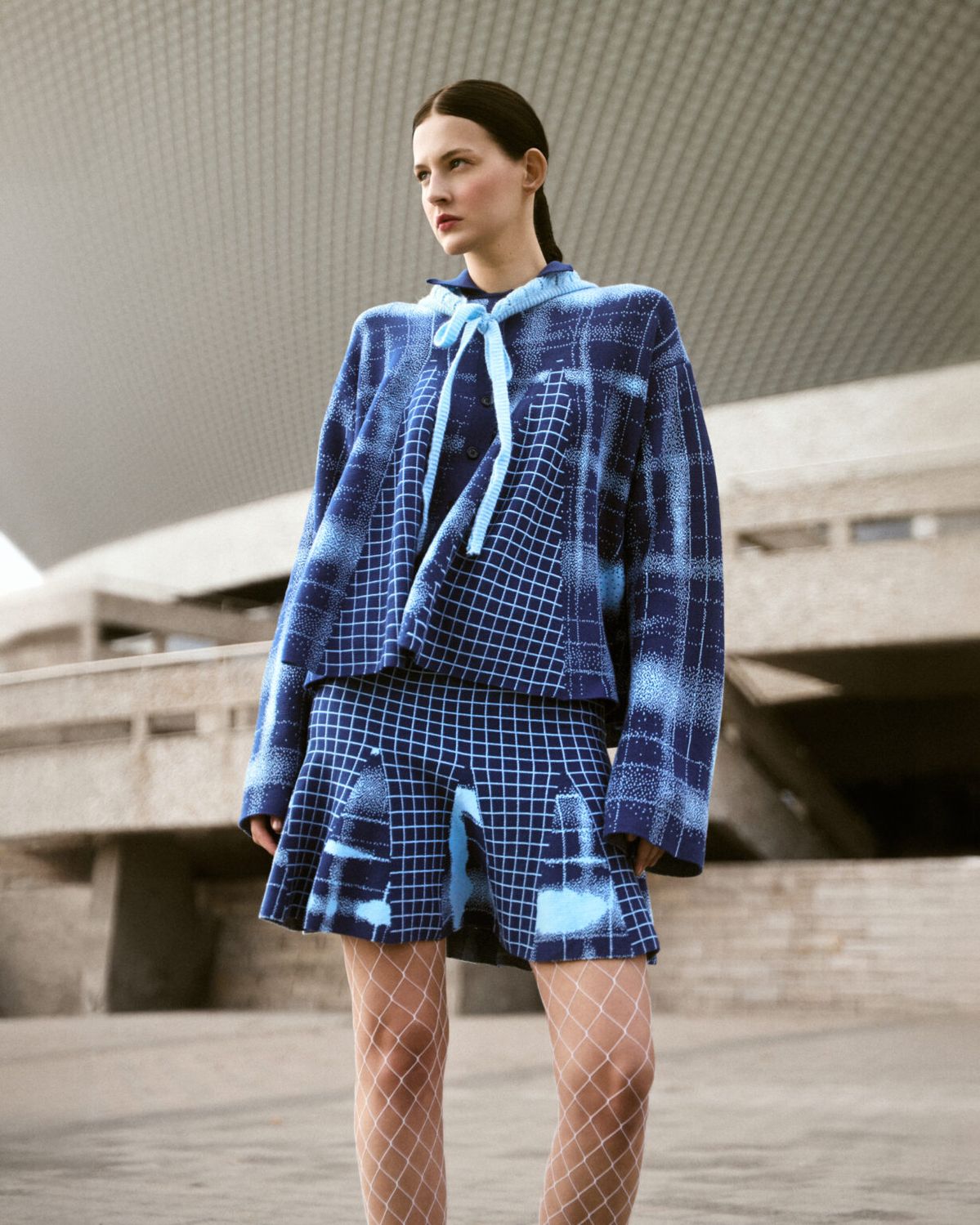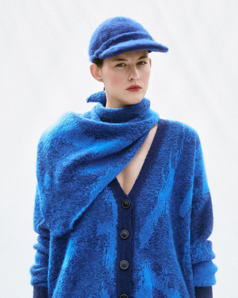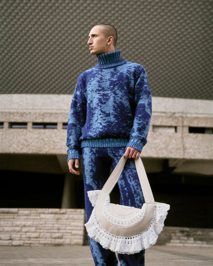 Pilarek, kojarzona dotychczas z odważnych, radosnych połączeń kolorystycznych w stylu dopamine dressing, tym razem sięgnęła po chłodne niebieskości, będące metaforą surowego śląskiego krajobrazu. Największym kolorystycznym szaleństwem kolekcji stało się połączenie turkusu z czekoladowym brązem, a ten efektowny kontrast został dodatkowo wzmocniony poprzez wykorzystanie różnych faktur materiałów – gładkiej dzianiny oraz szydełkowych detali.