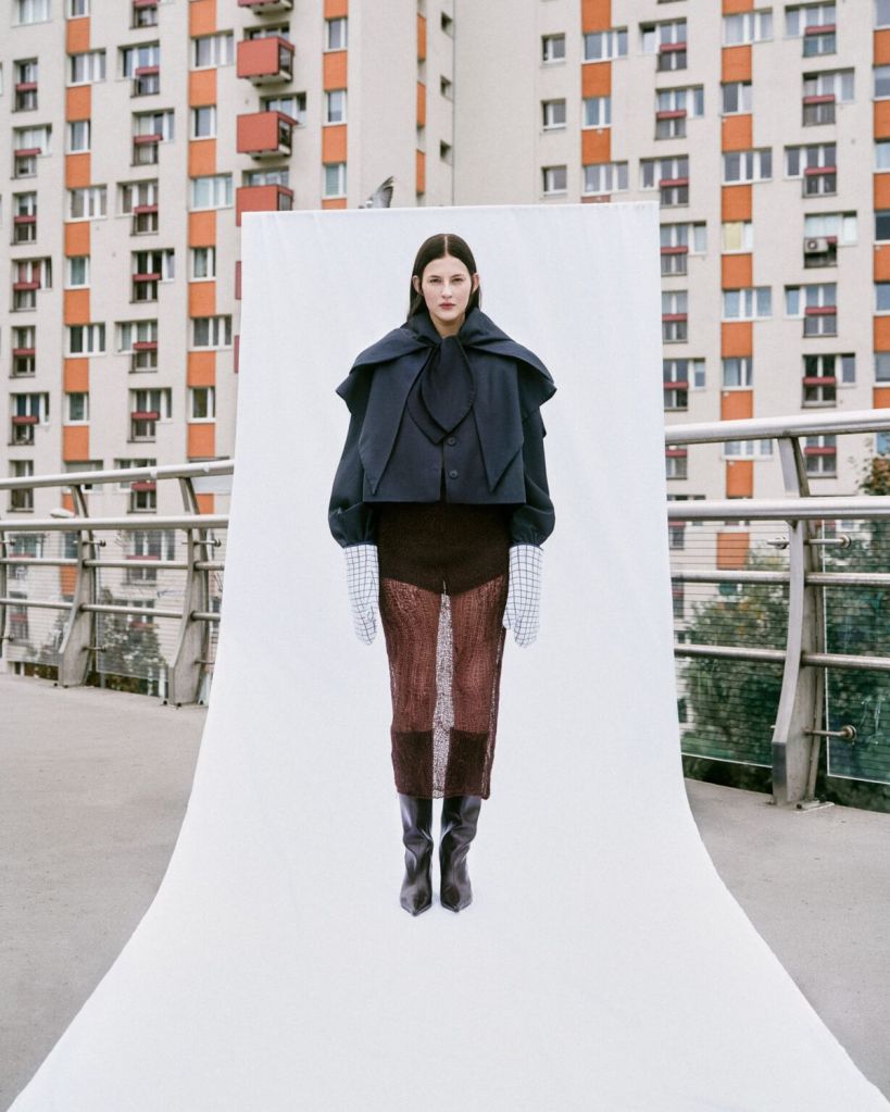 Maja Pilarek swoją najnowszą kolekcję „Echoes” na sezon jesień/zima 2025 traktuje jako list miłosny do regionu, z którego pochodzi. Śląsk, stereotypowo kojarzony z węglem, kopalniami czy robotniczymi osiedlami z czerwonej cegły, nie jest raczej pierwszym wyborem przy czerpaniu inspiracji do modowych moodboardów. Jednak tęsknota za rodzinnymi stronami okazała się dla projektantki na tyle silna, że nawet w tym surowym środowisku zdołała odkryć jego piękno.