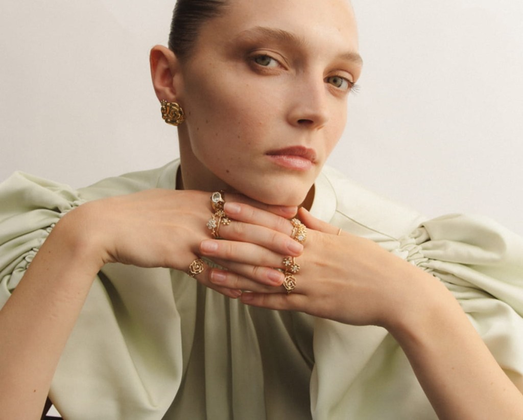 MAAR Jewellery to marka słynąca z wyrazistej, przyciągającej wzrok biżuterii. Kolorowe kamienie szlachetne, nieregularne kształty, asymetrie i organiczne linie to jej znaki rozpoznawcze. W sezonie jesień/zima 2025 marka czerpie inspiracje ze świata flory, zamieniając poszczególne elementy w miniaturowe róże, gerbery, gardenie i stokrotki.