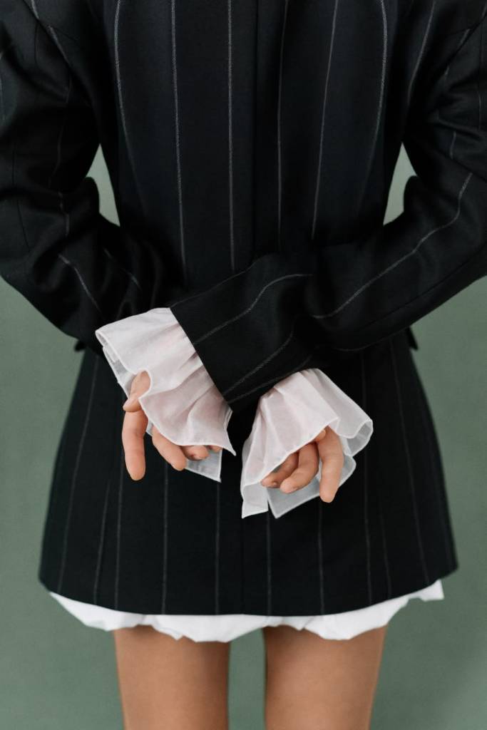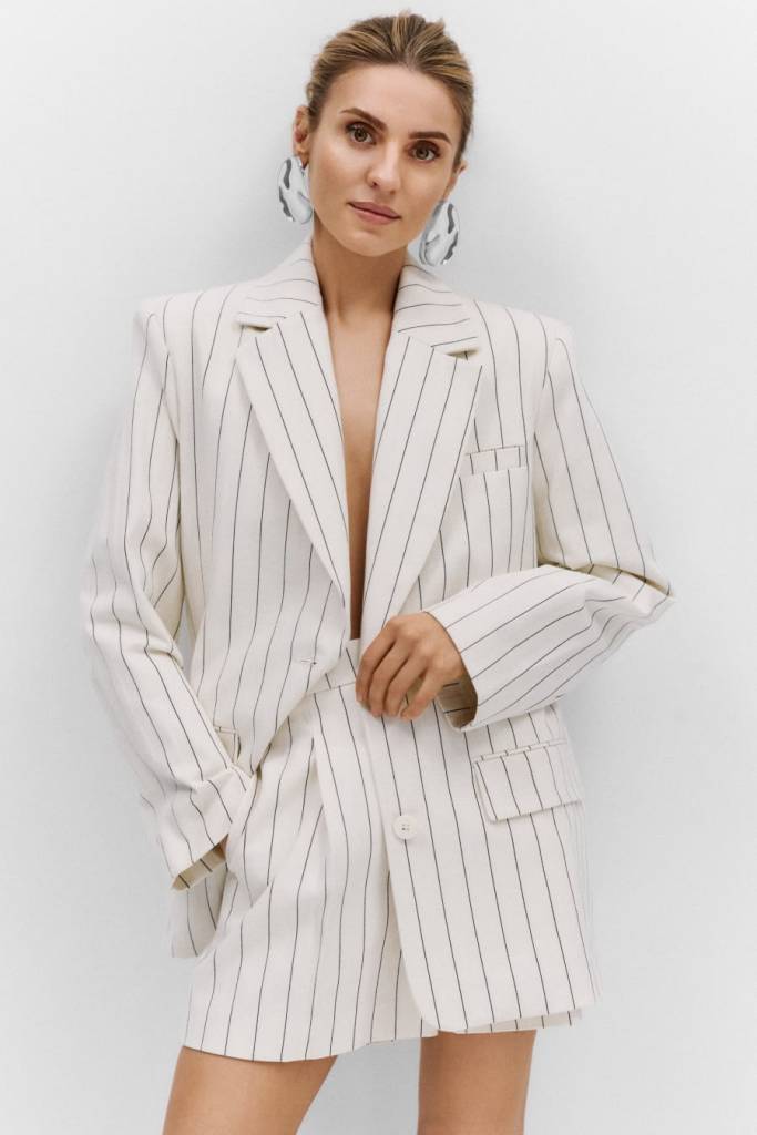 Tę jakość widać od razu. Produkcja nie jest masowa, dlatego część nowej kolekcji dostępna jest dopiero po zapisaniu się na listę oczekujących. Wśród rzeczy, na które klientki muszą jeszcze chwilę poczekać, znajdują się między innymi uwielbiane swetry – Torino z zamkiem pod szyją w wersji ciepłej bieli oraz golf z pęknięciami na rękawach, absolutnie obłędne marynarki w prążek czy ozdobne, odpinane mankiety z falbanką. W kolekcji znajdziemy też szare marynarki o klasycznym, jednorzędowym kroju, krótki trencz w idealnym „kamiennym” odcieniu (MLE zapowiada go również w przedłużonej wersji), sukienki wręcz stworzone na lato, ale też modne spódnice bombki.