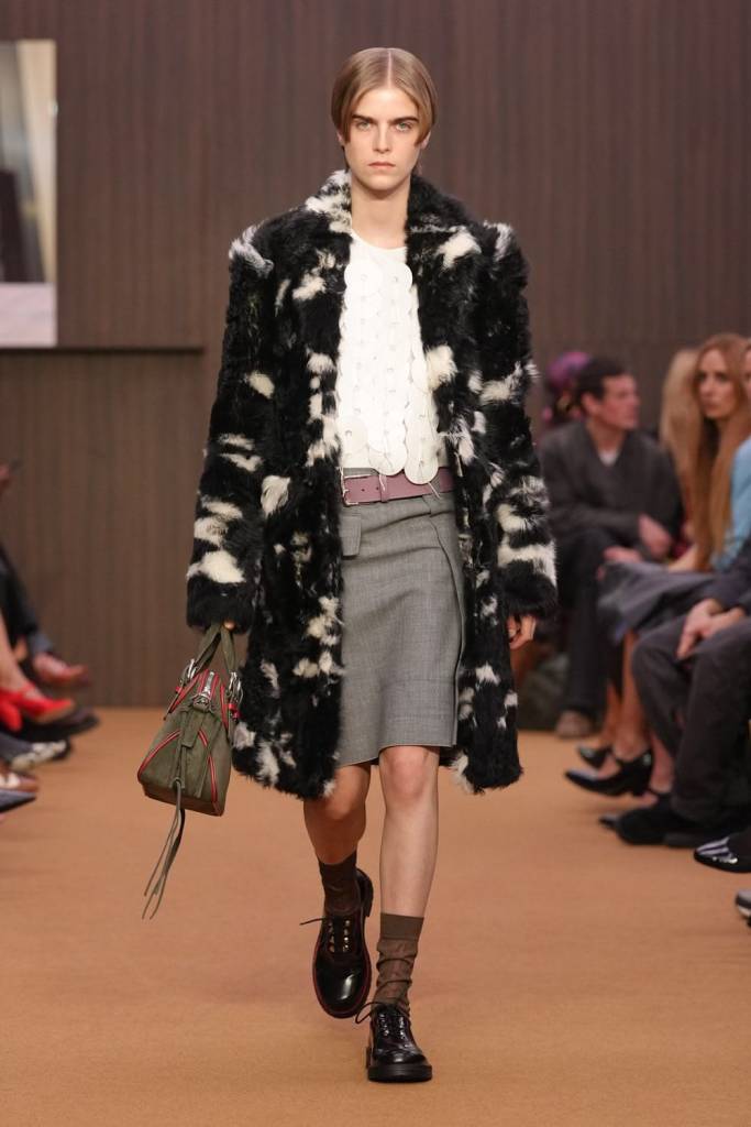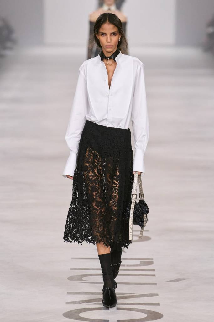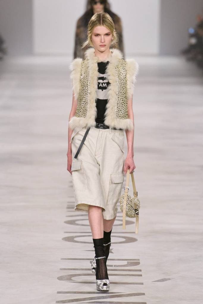 Po rocznym urlopie od branży Maria Grazia Chiuri powraca do korzeni, przejmując stery we włoskim domu mody Fendi. Projektantka, która ostatnią dekadę spędziła u Diora, a wcześniej przez lata współtworzyła potęgę Valentino, zadebiutowała kolekcją bezpieczną i wysoce przewidywalną. Choć na wybiegu nie zabrakło udanych sylwetek, całość sprawiała wrażenie kompilacji sprawdzonych pomysłów, które Chiuri wielokrotnie eksploatowała u poprzedniego pracodawcy. Kolekcja jest wyraźnie ukierunkowana na sukces sprzedażowy: obok klasycznej czerni, bieli i misternych koronek, pojawiły się elementy mające przyciągnąć młodsze pokolenie – futrzane kamizelki oraz szerokie spodnie typu bojówki.