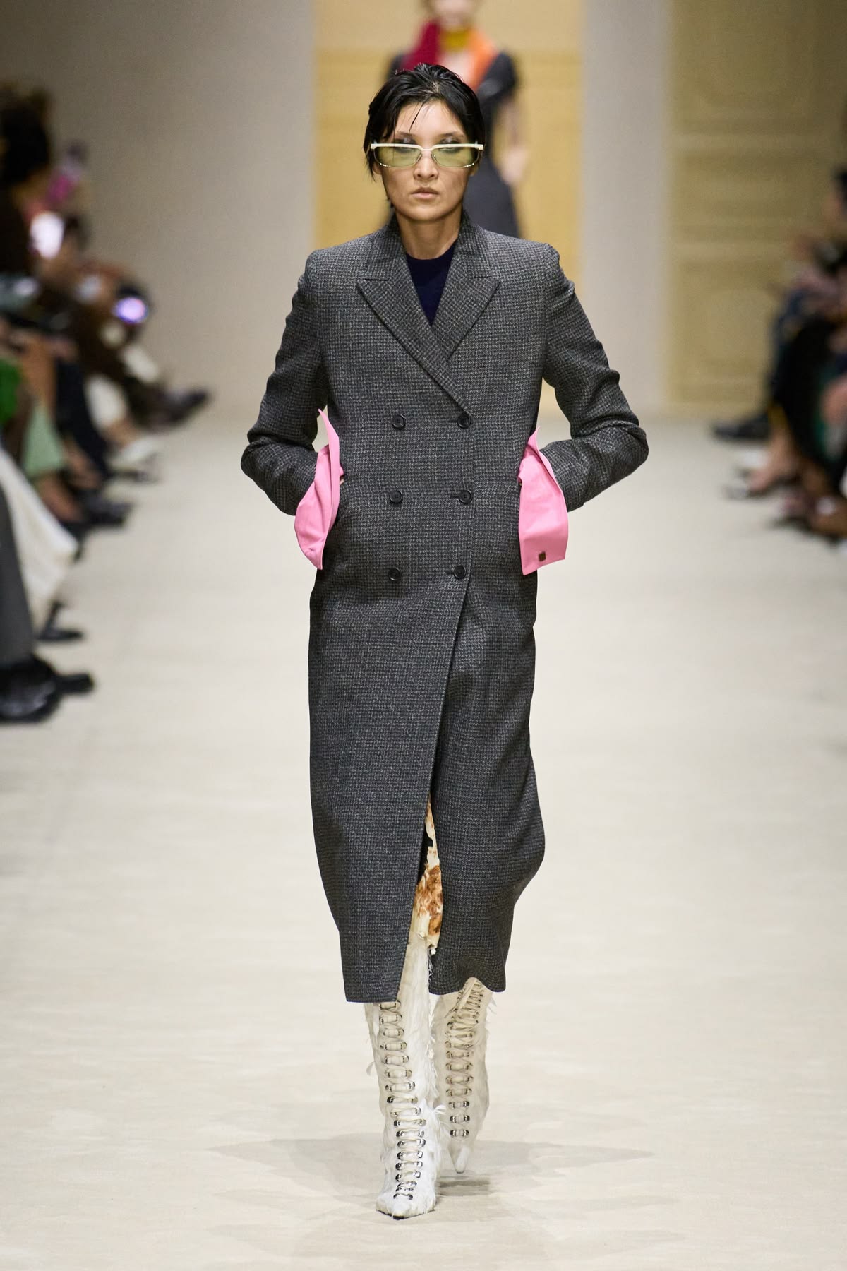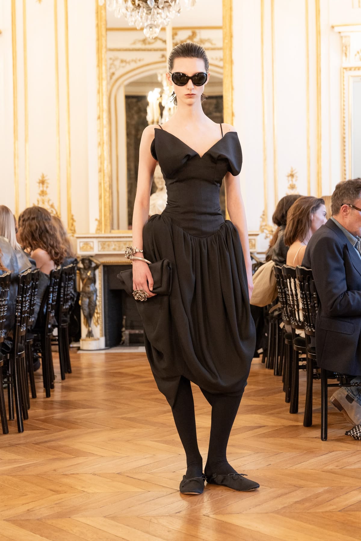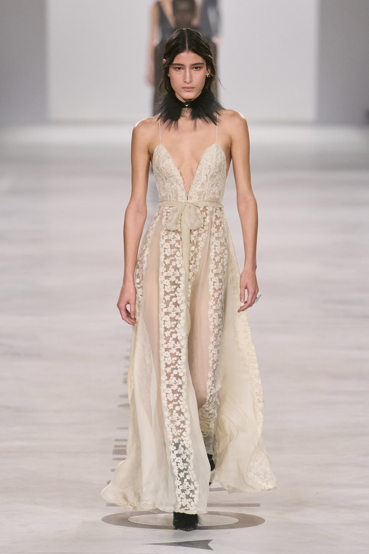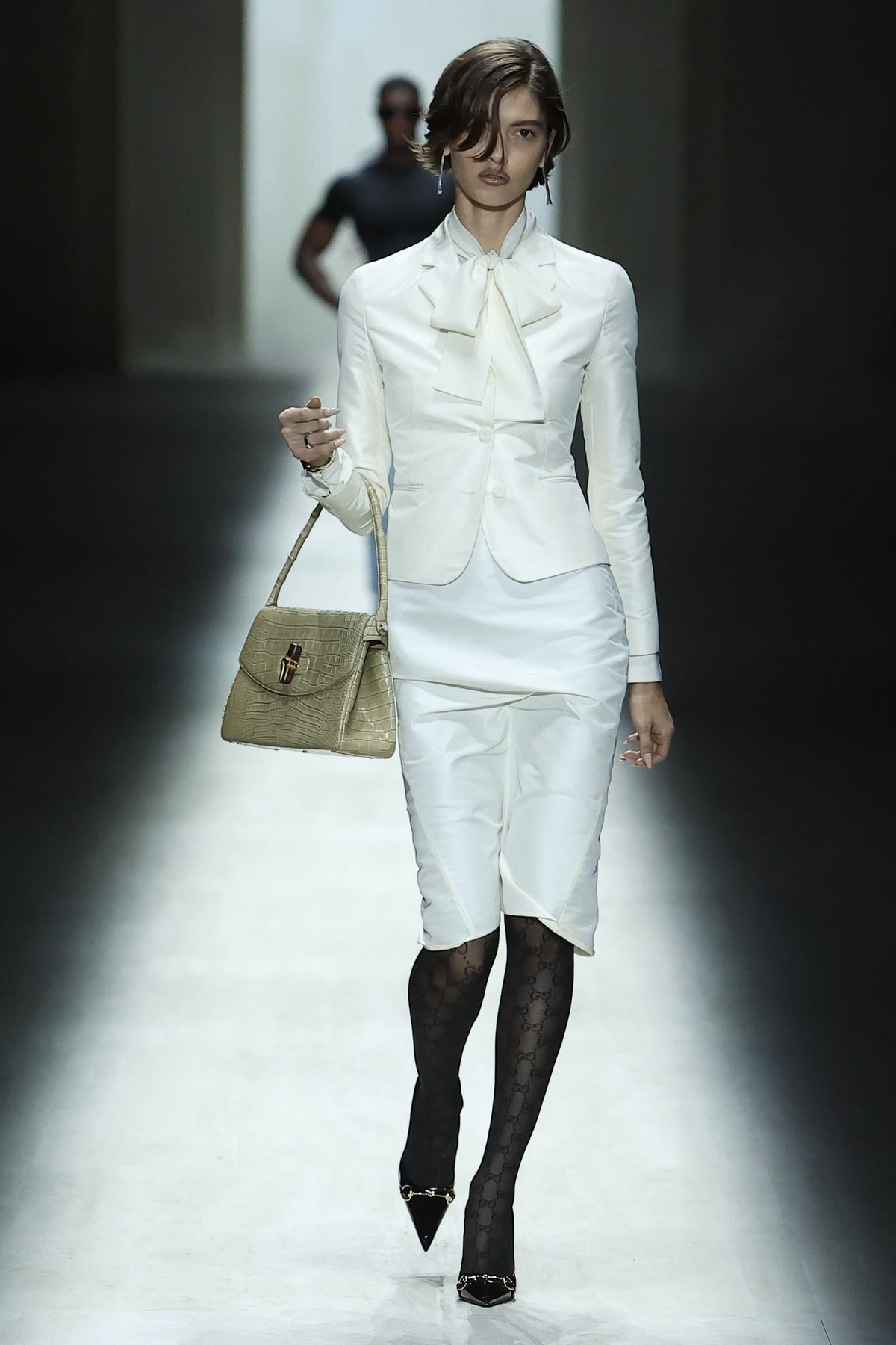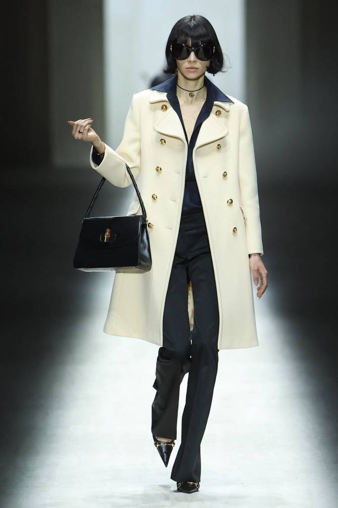 Krytycy z zapartym tchem czekali na debiutancką kolekcję ready-to-wear autorstwa Demny Gvasalii. Gruziński projektant postanowił zmierzyć się z dziedzictwem Gucci z czasów Toma Forda, ale efekt końcowy budził raczej silne poczucie déjà vu. Choć kolekcja miała mocniejsze punkty, w dużej mierze opierała się na recyklingu archiwalnych projektów i próbie wskrzeszenia estetyki heroin chic. Niepokój budził nawet krok modelek – nie wiadomo, czy ich chwiejny chód był zamierzonym performansem, czy jedynie efektem fatalnie sprofilowanego obuwia. Finał z udziałem zjawiskowej Kate Moss w ikonicznej sukni z odsłoniętymi stringami był jedynie „wisienką na torcie”, która ostatecznie potwierdziła wtórność całego pokazu.