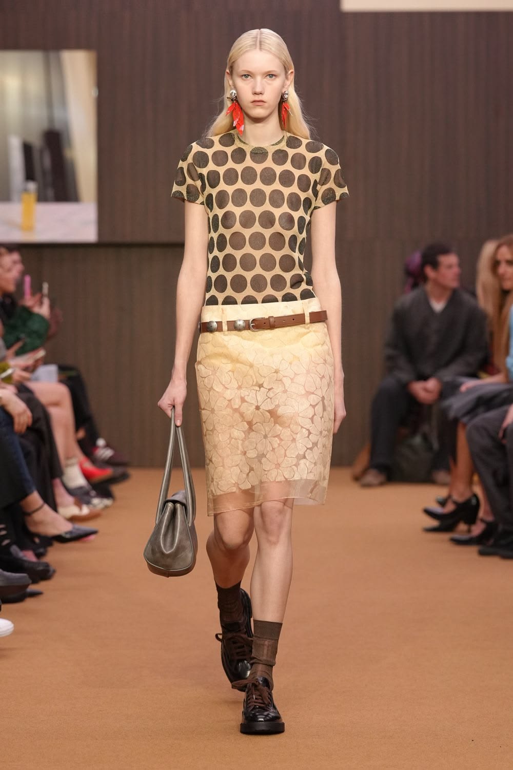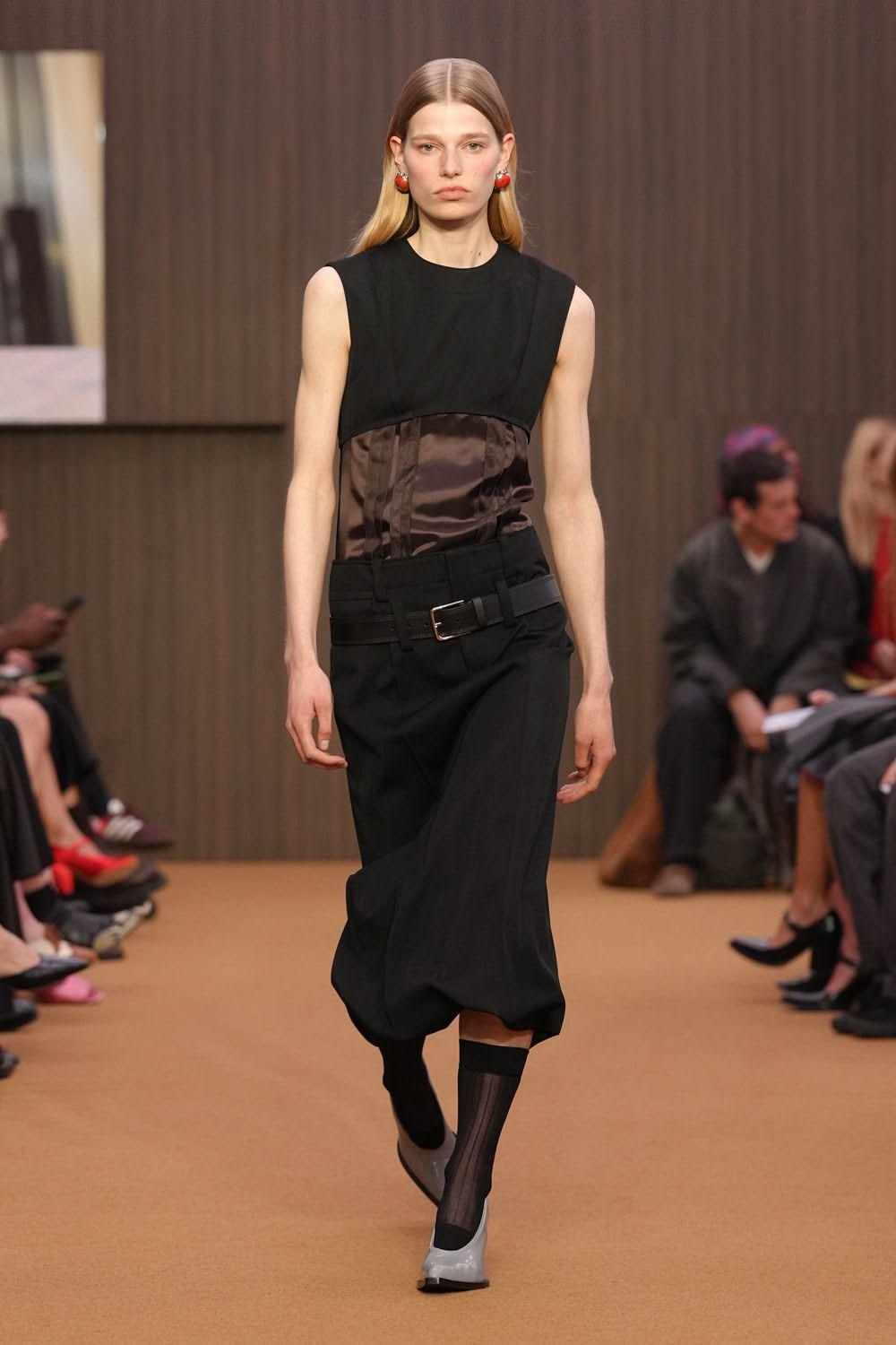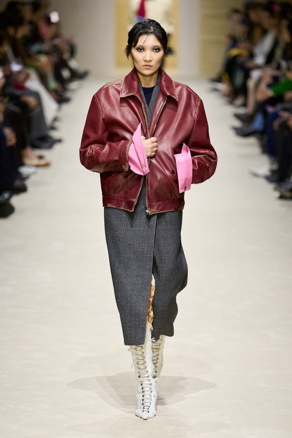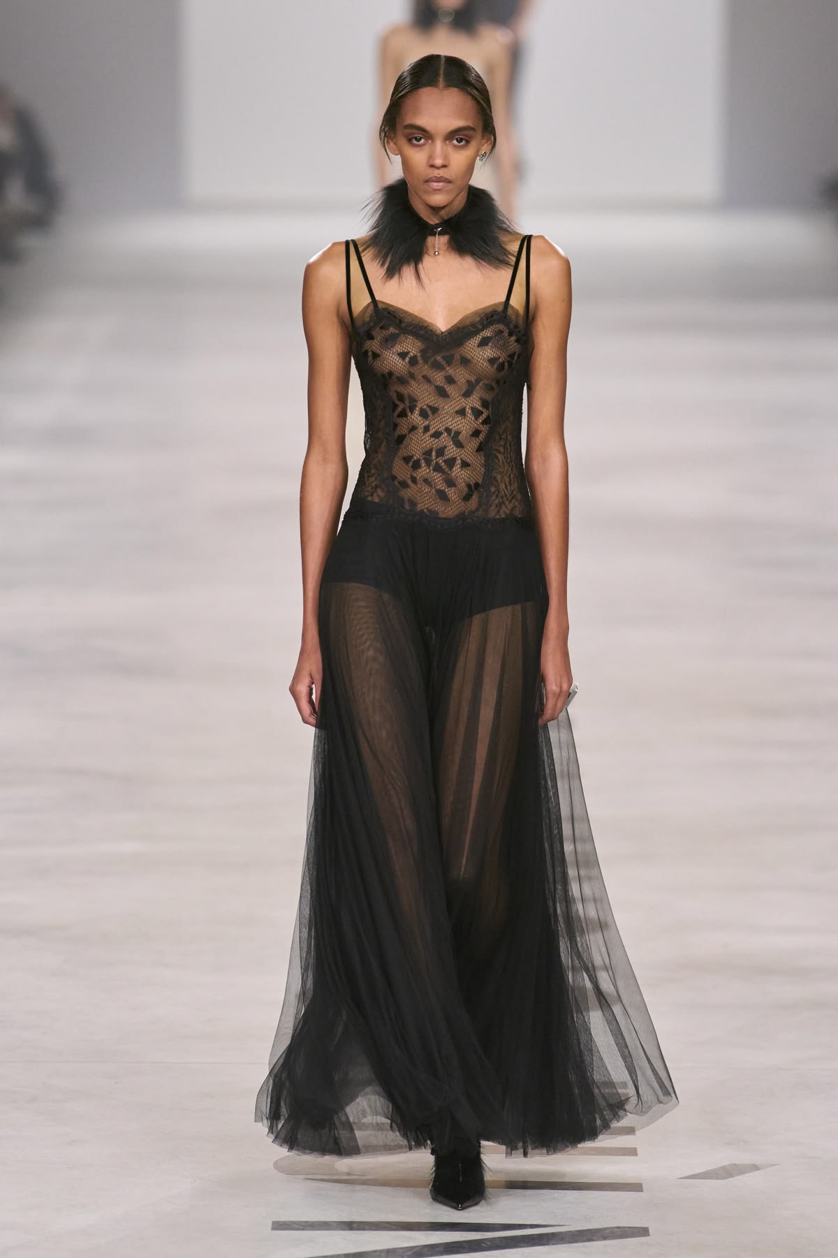 Krytycy z zapartym tchem czekali na debiutancką kolekcję ready-to-wear autorstwa Demny Gvasalii. Gruziński projektant postanowił zmierzyć się z dziedzictwem Gucci z czasów Toma Forda, ale efekt końcowy budził raczej silne poczucie déjà vu. Choć kolekcja miała mocniejsze punkty, w dużej mierze opierała się na recyklingu archiwalnych projektów i próbie wskrzeszenia estetyki heroin chic. Niepokój budził nawet krok modelek – nie wiadomo, czy ich chwiejny chód był zamierzonym performansem, czy jedynie efektem fatalnie sprofilowanego obuwia. Finał z udziałem zjawiskowej Kate Moss w ikonicznej sukni z odsłoniętymi stringami był jedynie „wisienką na torcie”, która ostatecznie potwierdziła wtórność całego pokazu.