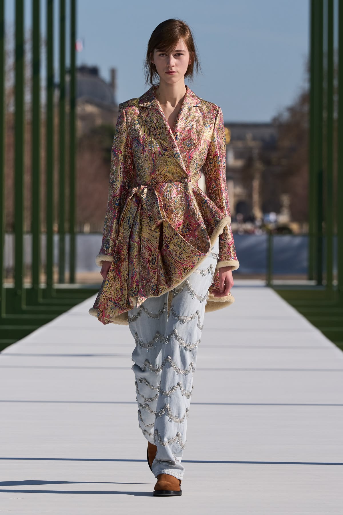 Magda Butrym powraca do Paryża z kolekcją „Zima”, udowadniając, że polskie kody kulturowe mają światowy potencjał. Tym razem projektantka zabiera nas w podróż do roku 1969, reinterpretując styl ikony polskiego kina, Małgorzaty Braunek, z filmu „Polowanie na muchy” Andrzeja Wajdy. Projektantka po mistrzowsku splotła estetykę bohaterki granej przez Małgorzatę Braunek ze swoimi flagowymi projektami: przerysowanymi garniturami, rzeźbiarskimi sukniami i kunsztownym, ręcznie robionym koronkarstwem. Pokaz otworzyła polska supermodelka Małgorzata Bela, która jako twarz kolekcji idealnie ucieleśniła wizję nowoczesnej, silnej kobiecości.