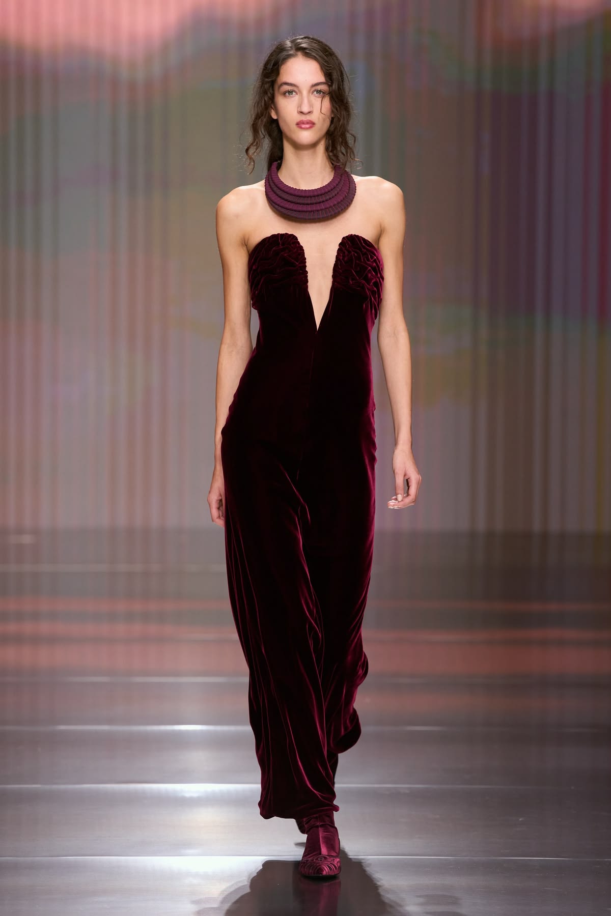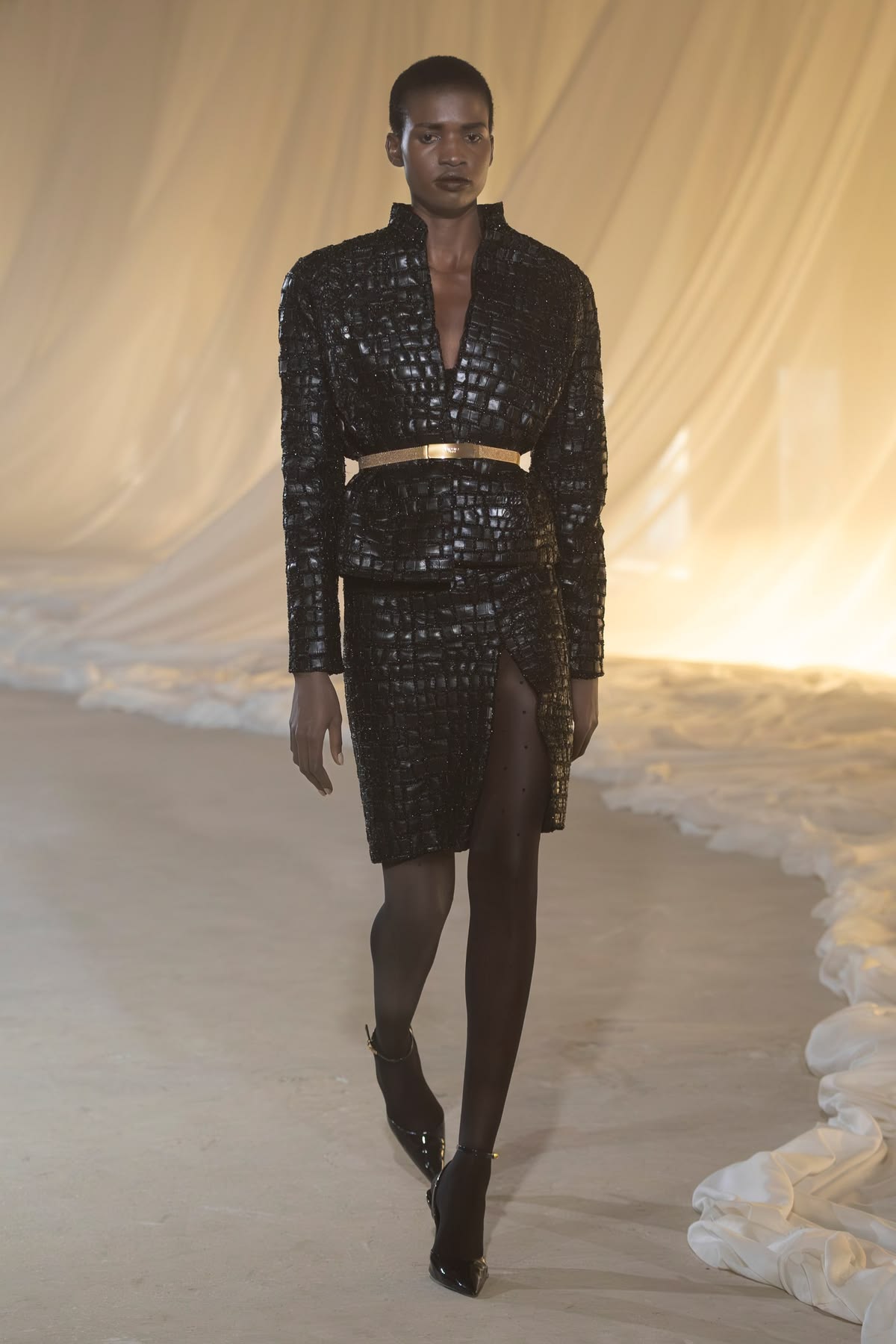 Antonin Tron otwiera nowy rozdział w historii Balmain, przejmując stery po wieloletniej, charyzmatycznej erze Oliviera Rousteinga. Twórca marki Atlein wprowadza dom mody w estetykę „minimalistycznego przepychu”, serwując dojrzałą interpretację trendów z okolic 2010 roku. Choć w kolekcji wciąż obecne są kody marki – poszerzona linia ramion, głębokie dekolty i rockowe skóry, Tron wprowadza autorski podpis: mistrzowskie, zmysłowe drapowania i asymetrie. W przeciwieństwie do ciężkich, bogato zdobionych projektów swojego poprzednika, nowy dyrektor kreatywny postawił na lekkie dżerseje i satyny, które w jego rękach układają się w niemal antyczne fałdy.