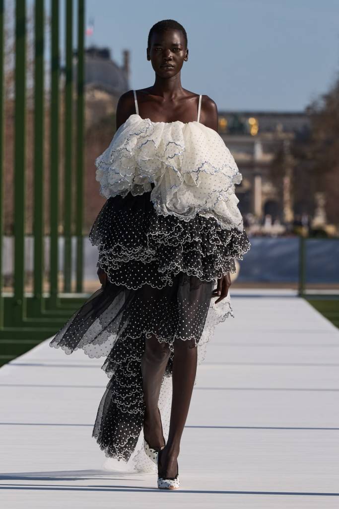 Po debiutanckiej kolekcji wiosna/lato 2026, która z jednej strony zachwycała konstrukcyjnym kunsztem, a z drugiej kwestionowała granice tożsamości Diora, drugi pokaz ready-to-wear ugruntuwał pozycję Jonathana Andersona w legendarnym domu mody. Precyzyjne konstrukcje żakietów złagodniały, warstwy falban tańczyły w ruchu, błyszczące tkaniny subtelnie migotały w blasku słońca, a uwielbiane przez monsieur Diora kwiaty zostały odmienione przez wszystkie przypadki: pojawiły się w formie nadruków, falistych wykończeń brzegów czy rzeźbiarskich aplikacji na butach. Anderson udowodnił, że potrafi przełożyć DNA marki na własny, autorski język, łącząc historyczne dziedzictwo z indywidualnym charakterem.