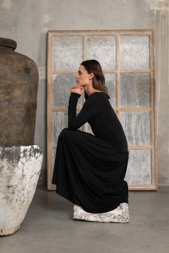Materiał nie tworzy już sztywnej ramy, lecz współpracuje z figurą niczym druga skóra. Sukienki w naturalny sposób celebrują krągłości, by za chwilę subtelnie spłynąć wzdłuż linii ciała, reagując na każdy krok. Ten dialog to nowa interpretacja klasyki według Nudyess – wciąż minimalistycznej i eleganckiej, ale zyskującej niespotykaną dotąd lekkość.
