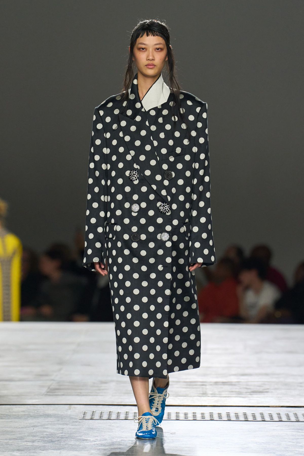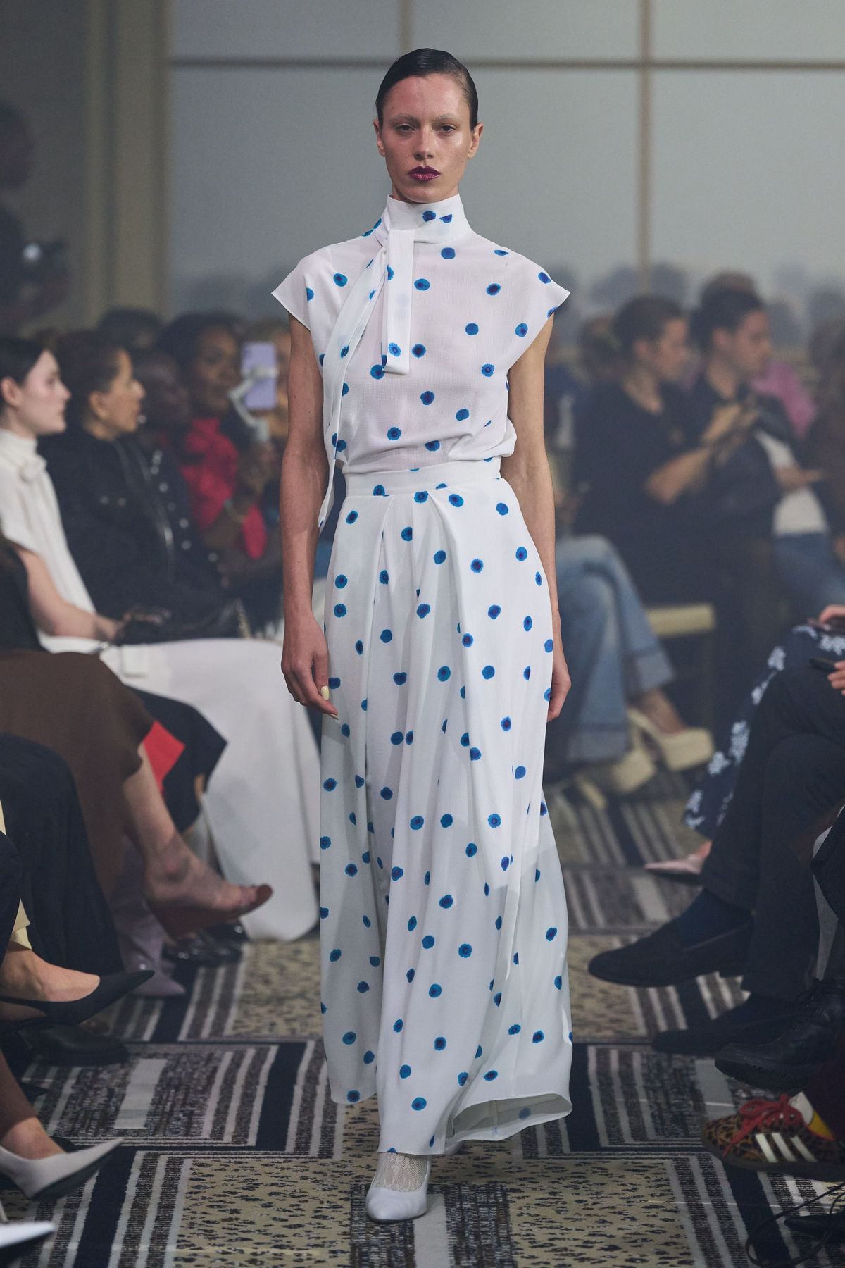 Widoczne na tygodniu mody w Kopenhadze w poprzednim sezonie grochy nadal obecne są na wybiegach. Choć nie uciekają już tak bardzo od skojarzeń retro (groszki w czerni i bieli to wzór ponadczasowy podobnie jak szkocka krata czy panterka), to równie świetnie odnajdują się w odsłonie bardziej nowoczesnej czy w kolorze.