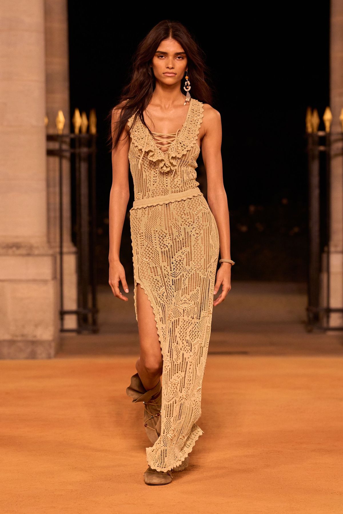 Wszelkiego rodzaju koronki dziergane na szydełku powracają w romantycznym stylu. Nadal flirtują z lokalnym folklorem, ale teraz bliżej im do estetyki festiwalowej. Dodaj torebkę z frędzlami, dużo masywnej biżuterii i sandały w stylu rzymianek i look gotowy.