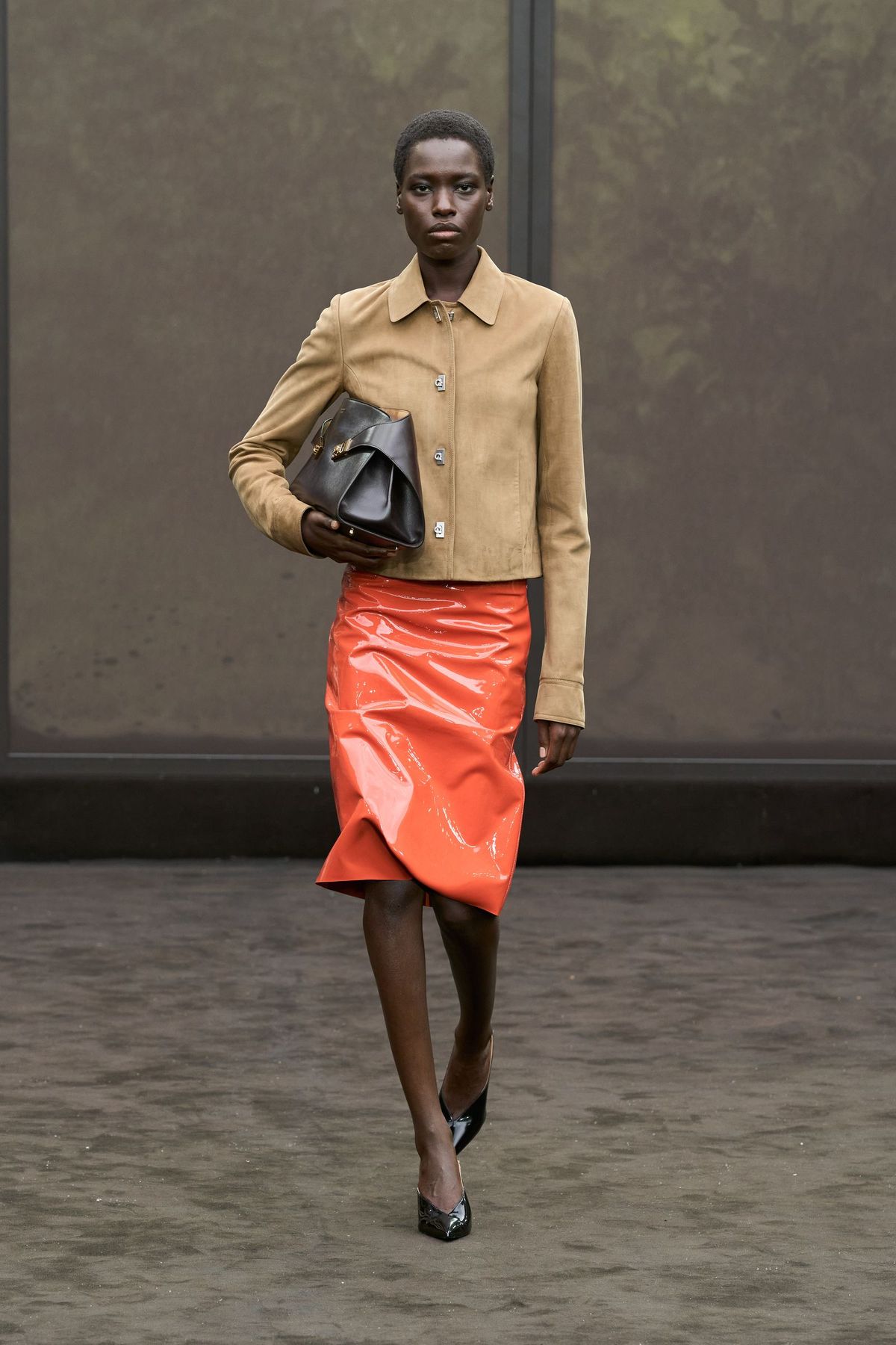 Tomato Red to intensywna, nasycona i ciepła czerwień o lekko pomarańczowym podtonie, przypominająca dojrzałe pomidory. Doskonale komponuje się ze zdecydowanymi krojami – postaw na garnitur, płaszcz o ciekawej formie lub sukienkę maxi.