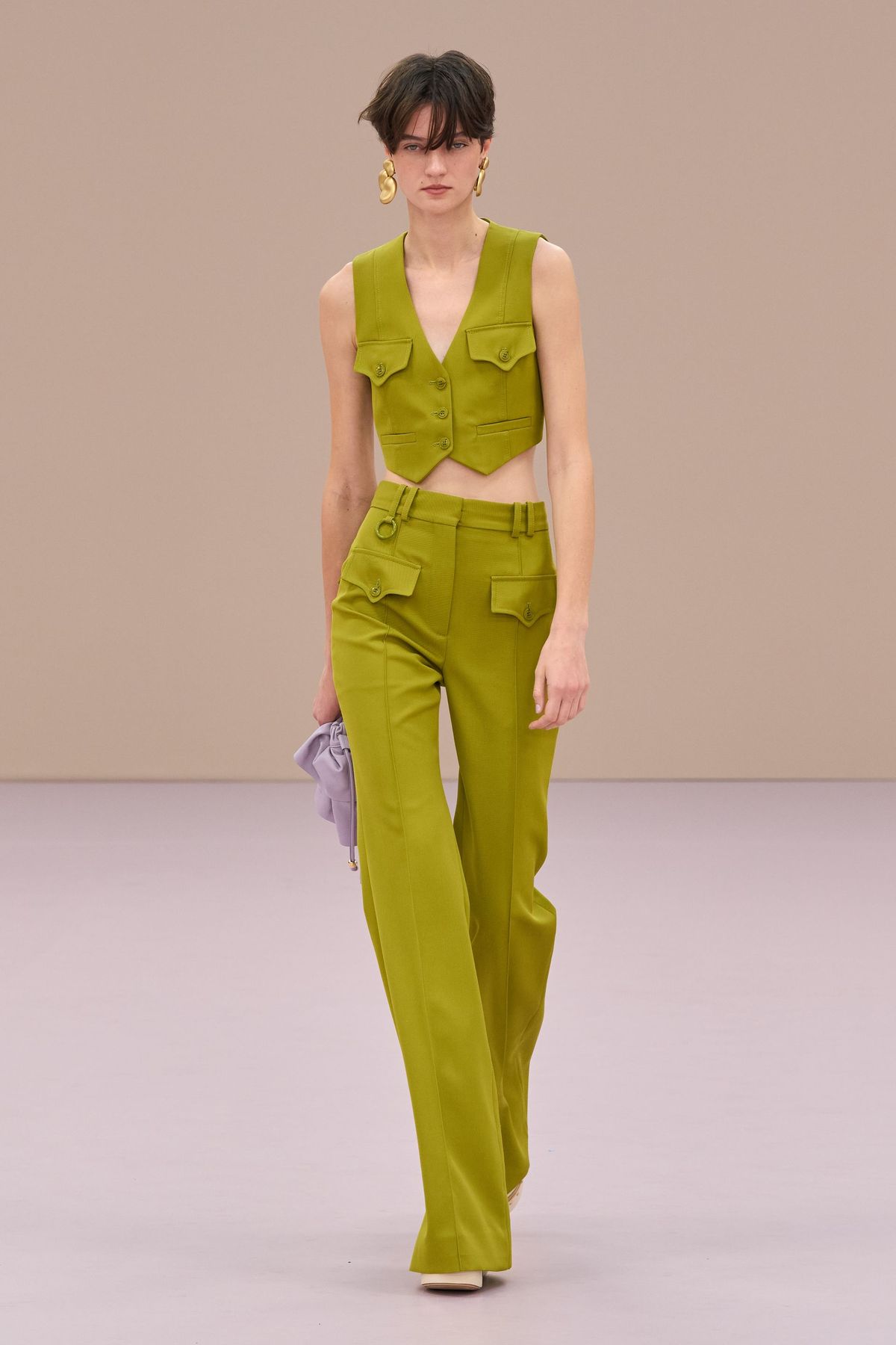 Na drugim biegunie znajduje się zieleń matcha – bardziej naturalna, stonowana i przybrudzona. Wbrew pozorom bardzo łatwo łączyć ją z innymi kolorami: wspomniany wcześniej maślany żółty, błękit czy nawet róż to dla matchy doborowe towarzystwo.