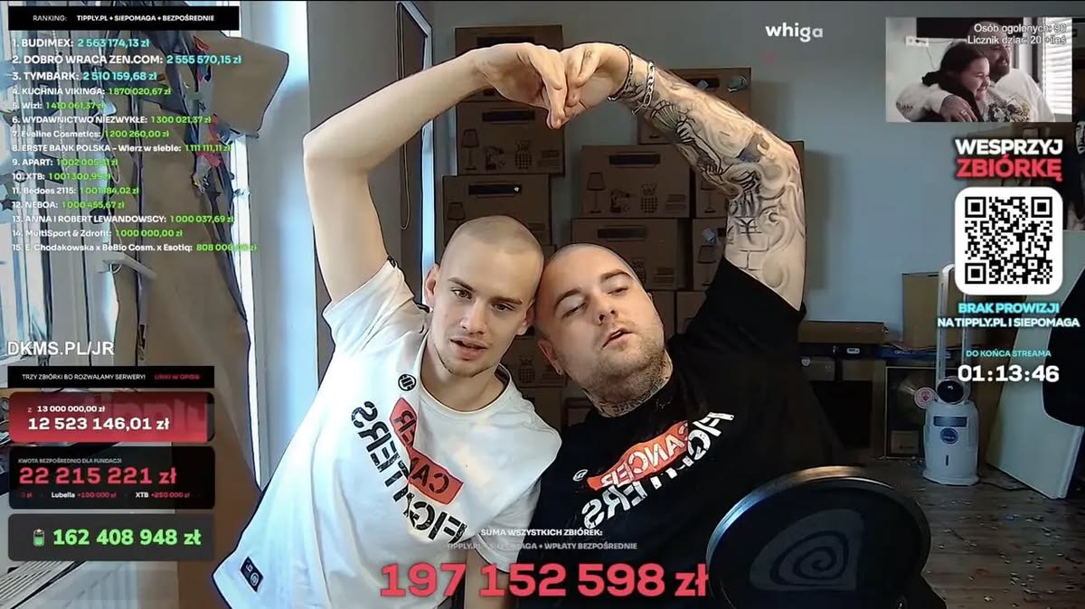 Całą lawinę dobra uruchomił utwór „Ciągle tutaj jestem (diss na raka)”, nagrany przez Bedoesa 2115 wspólnie z 11-letnią Mają Mecan, która walczy z białaczką szpikową. Patryk Garkowski, znany jako Łatwogang, rzucił wyzwanie: obiecał słuchać piosenki przez tyle sekund, ile polubień zbierze klip. Internet odpowiedział z taką siłą, że spontaniczny challenge zamienił się w 9-dniowy maraton. Choć początkowym celem było 500 tysięcy złotych, stream błyskawicznie stał się fenomenem w sieci, przyciągając znane nazwiska i firmy.