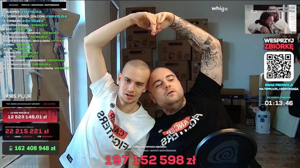 Łatwogang oficjalnie zapisał się na kartach historii internetu, ustanawiając rekord Guinnessa w kwocie zebranej podczas charytatywnego streamu. W ciągu dziewięciu dni influencer zgromadził ponad 250 mln złotych na rzecz fundacji Cancer Fighters, a w szczytowym momencie jego transmisję śledziło 1,5 mln widzów. To, co działo się na ekranach, stało się ostatecznym dowodem na to, że sieć potrafi zjednoczyć ludzi w słusznym celu.
